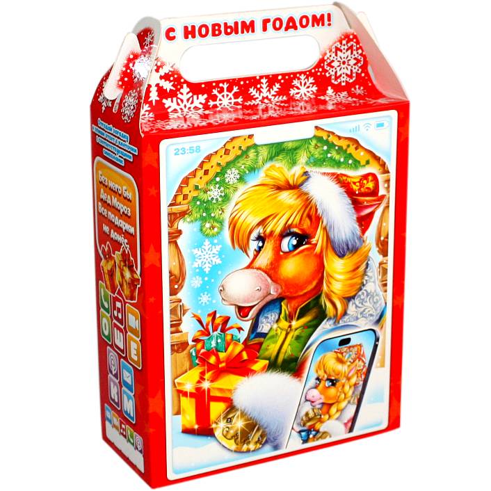 Детский новогодний подарок в картонной упаковке весом 800 грамм